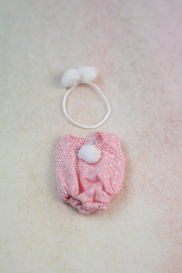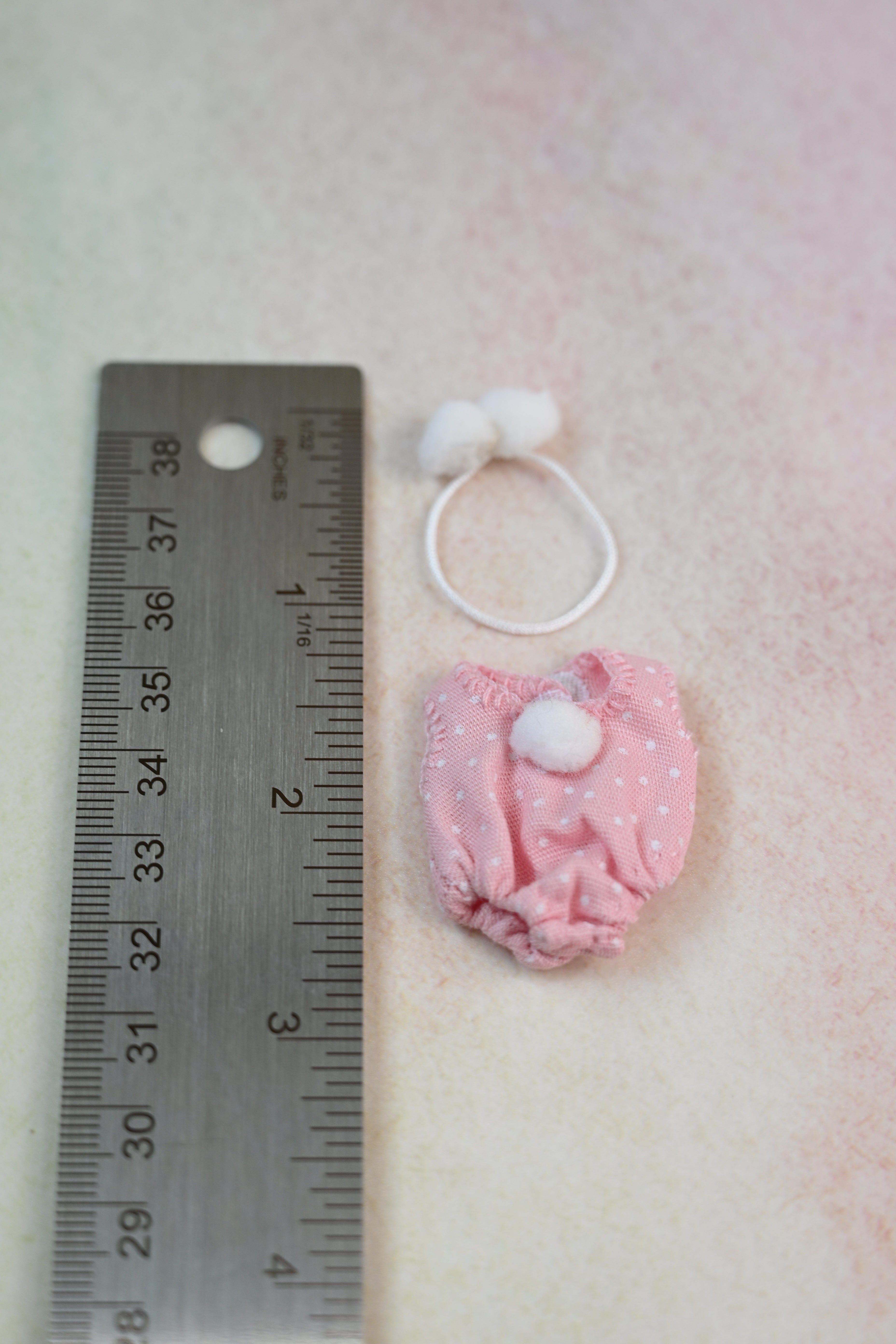 Pink Polka Dot Onesie with Pom Poms for 3" Dolls - Winter 2025 Collection