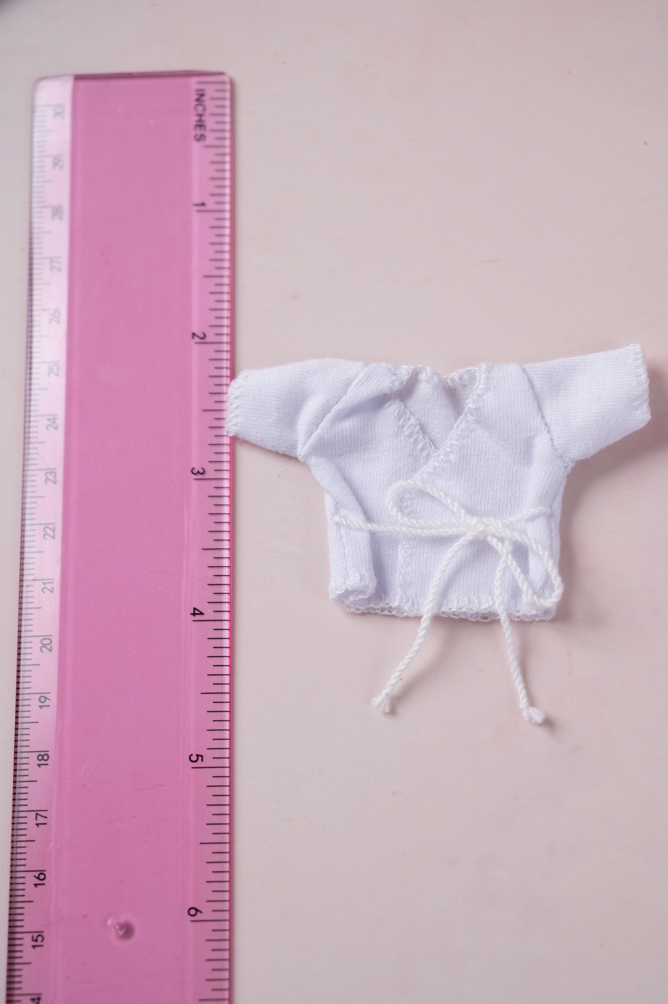 This sweet dainty white robe has a cute bow tied at the waist. It's sized for 4 inch dolls.