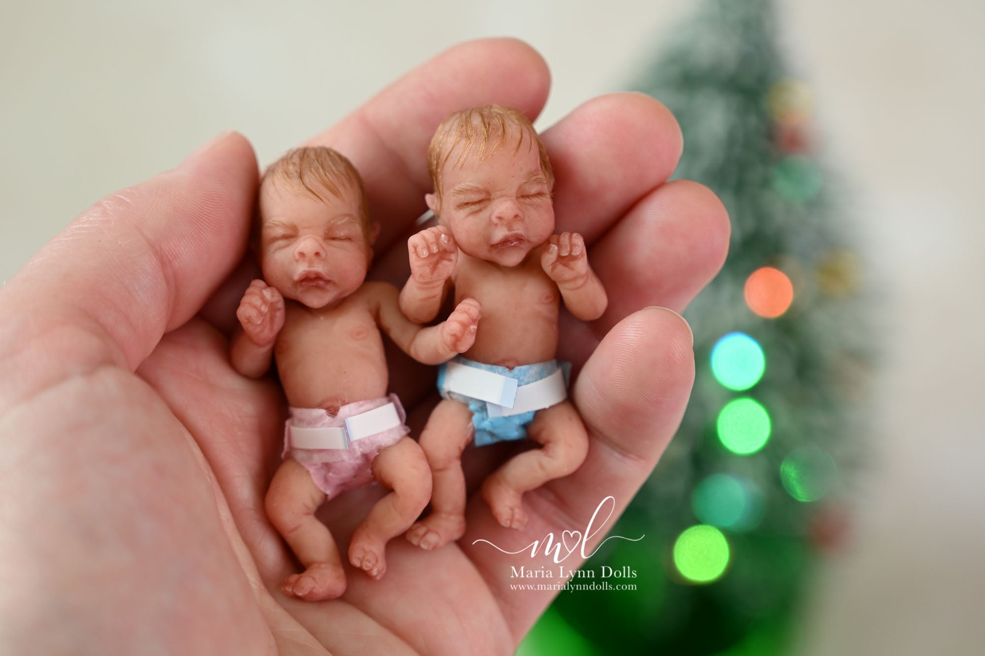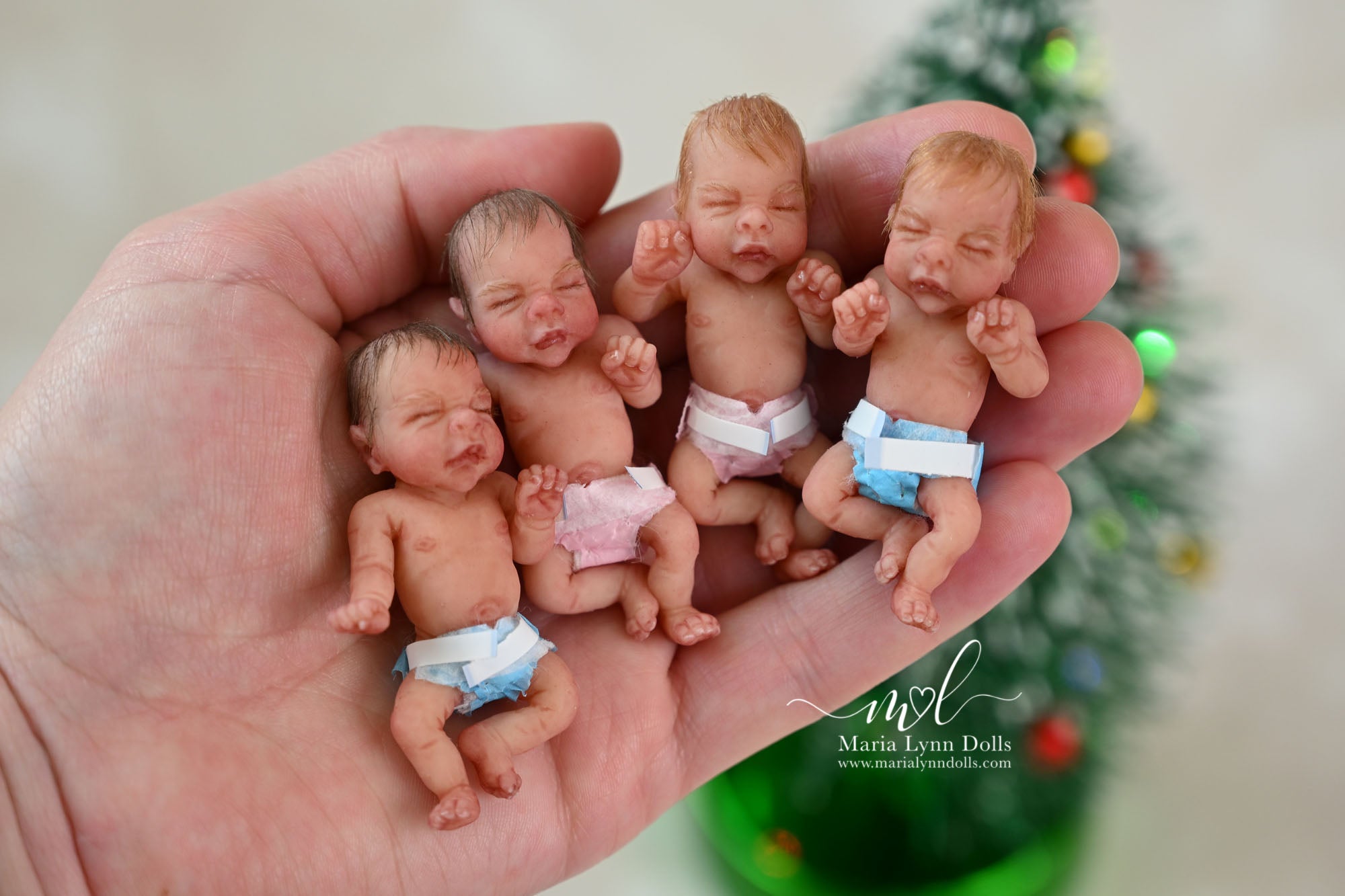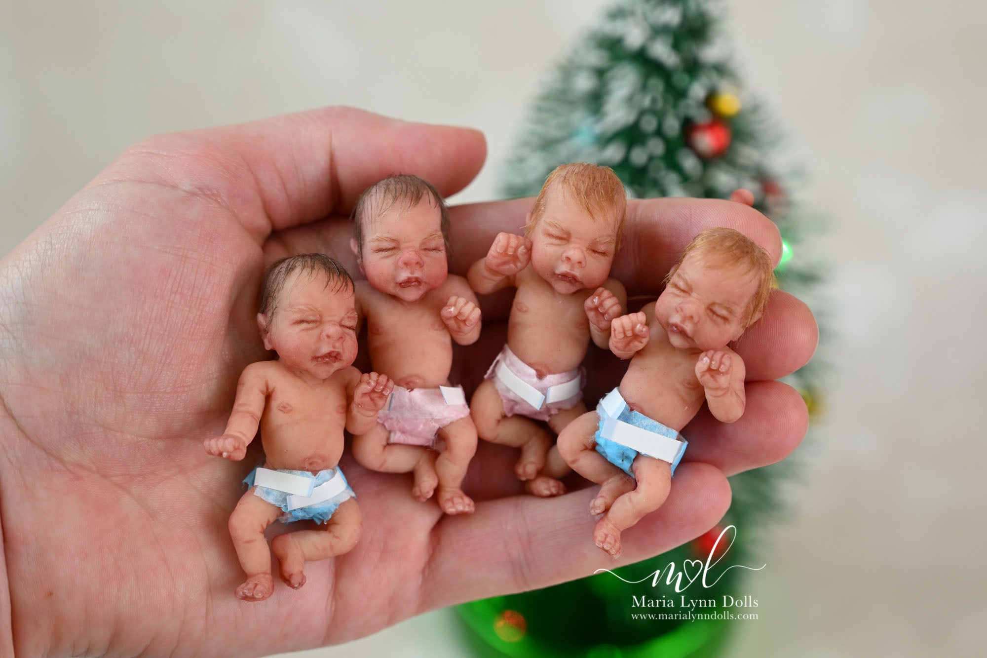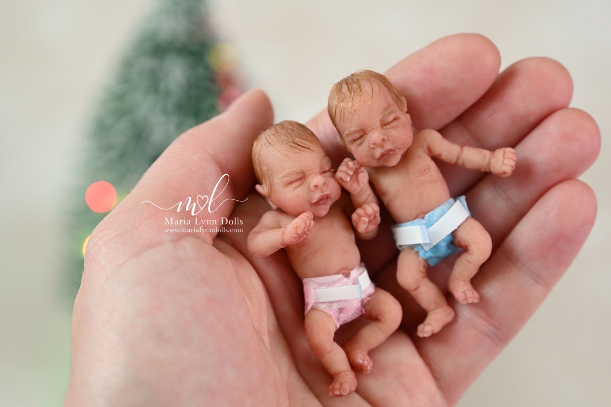 This teeny tiny Gretal (girl) sculpted by Shy Mrofka, has been painted by Maria Lynn. She has a tiny head of strawberry blond rooted hair and dainty rooted eyelashes. Gretal is about 2 inches long (barely 2.25" if stretched out straight) and is poured in a soft, squishable soft blend silicone. She has armatures in her arms and legs for extra ability to pose as well.