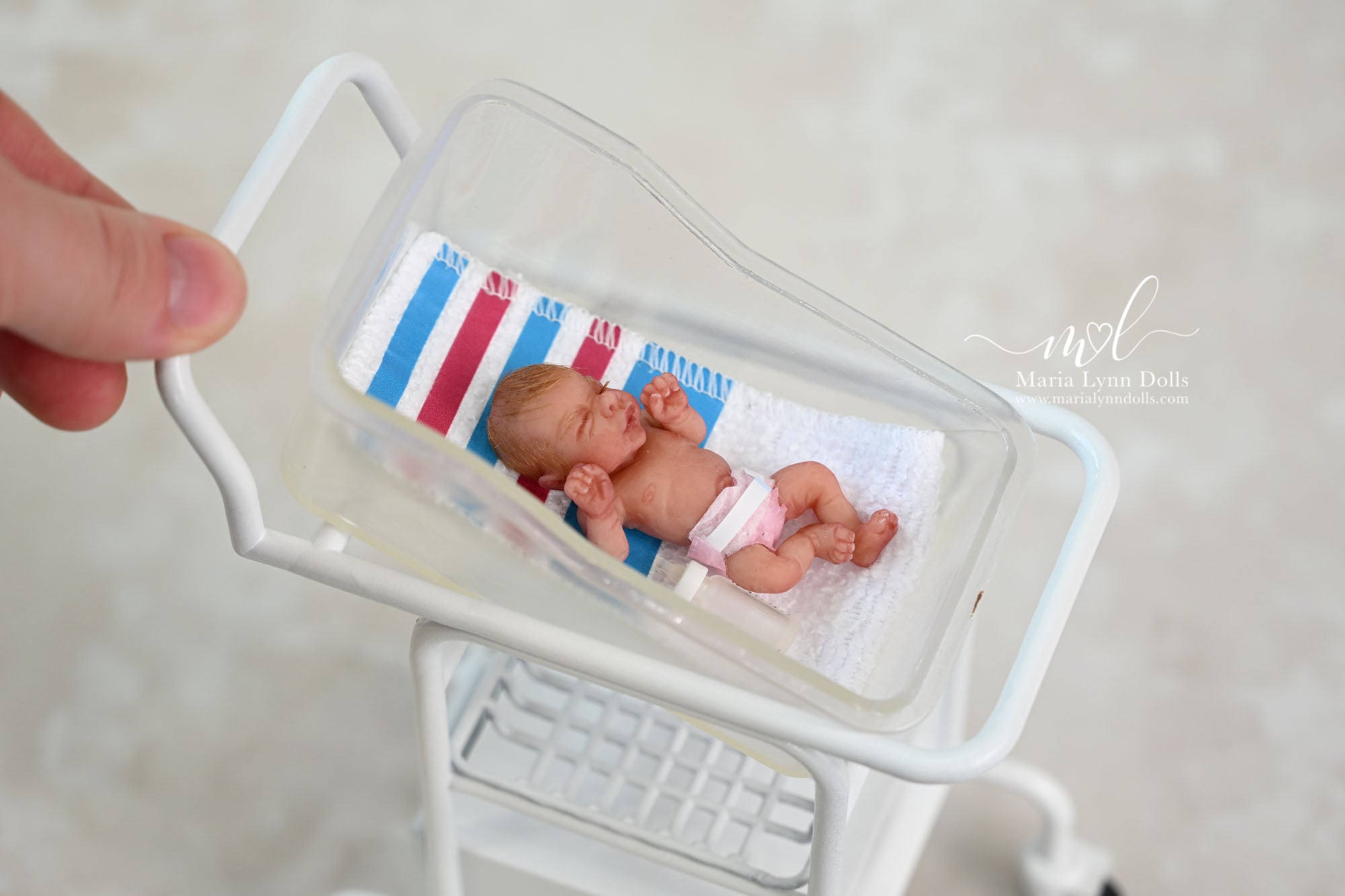 The little hospital bassinet and other furniture can be purchased here: miniature furniture