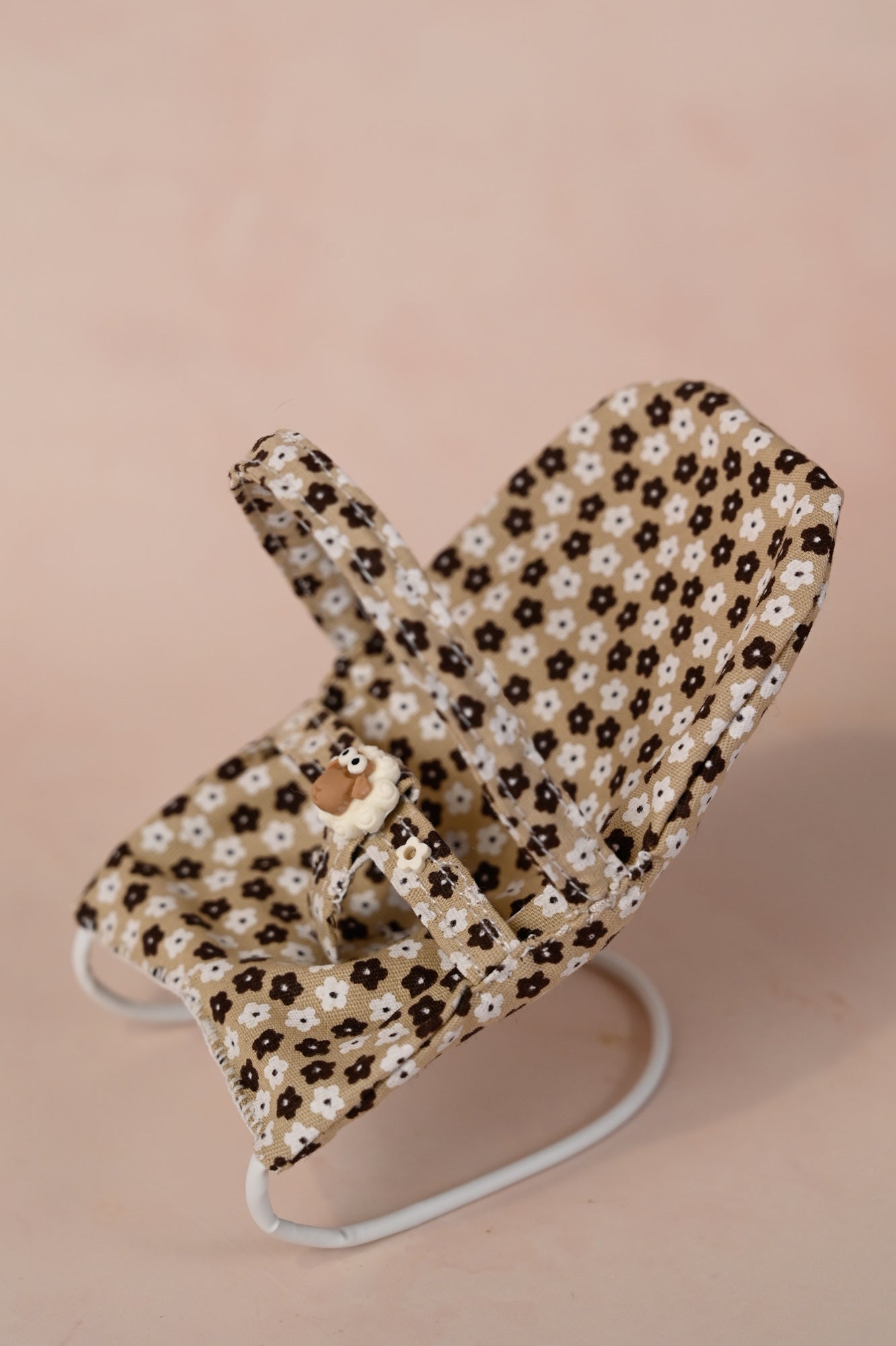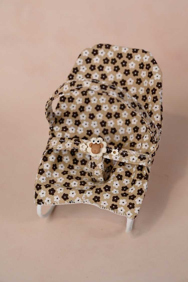 Miniature Baby Bouncer for 3-4 Inch Dolls - Black and White Floral