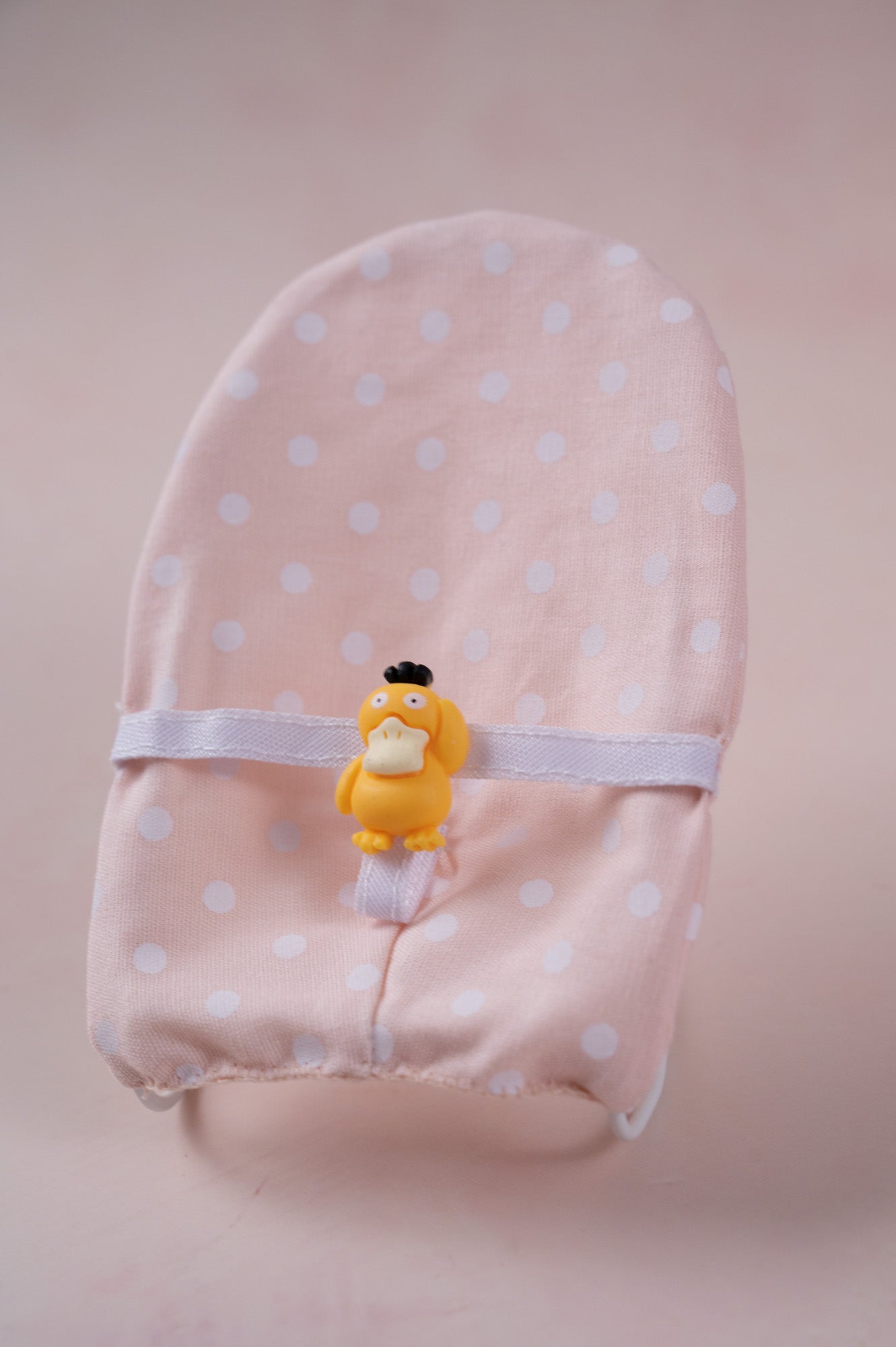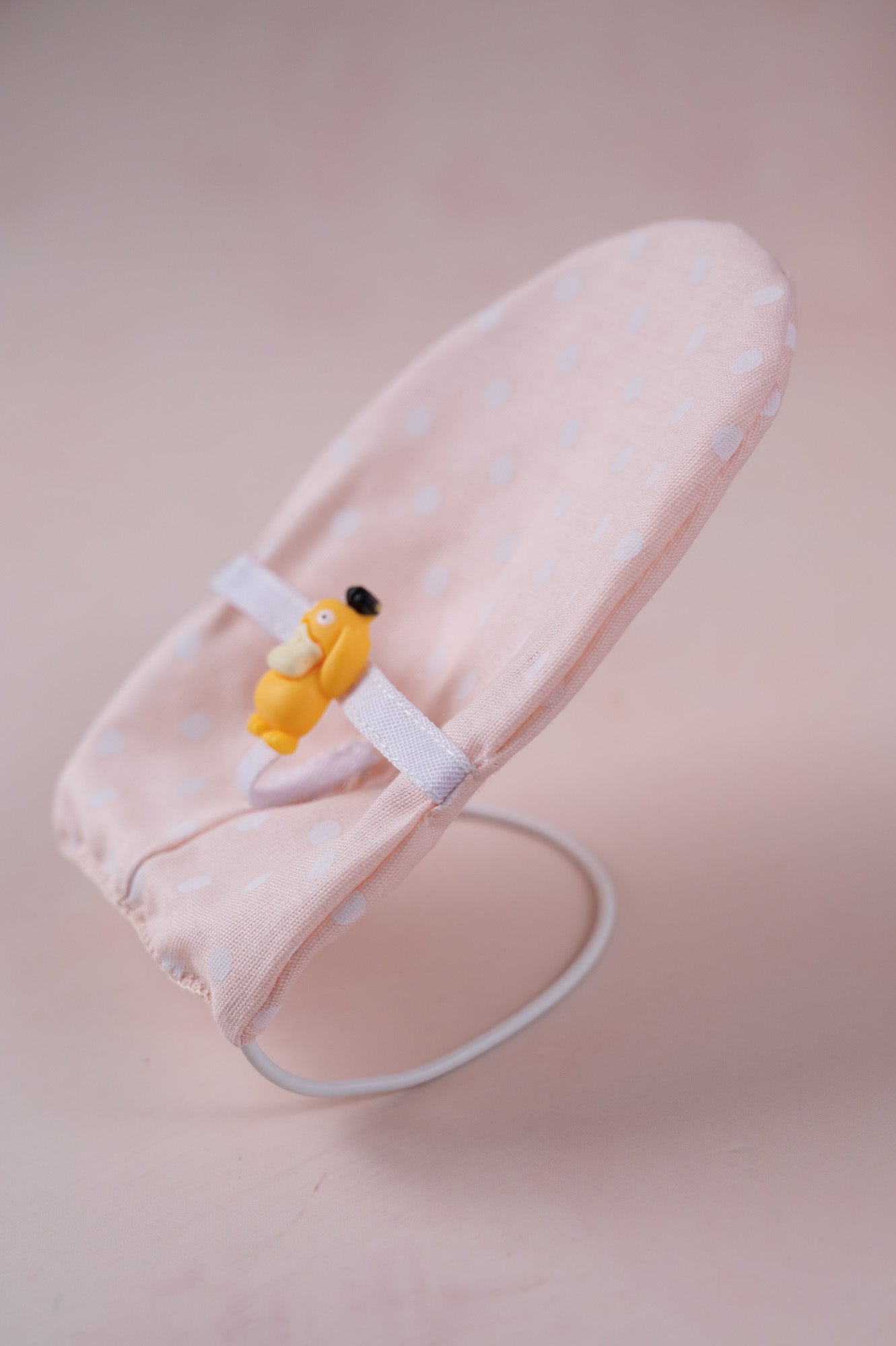 Miniature Baby Bouncer for 3-4 Inch Dolls - Pink Polka Dot with Duck