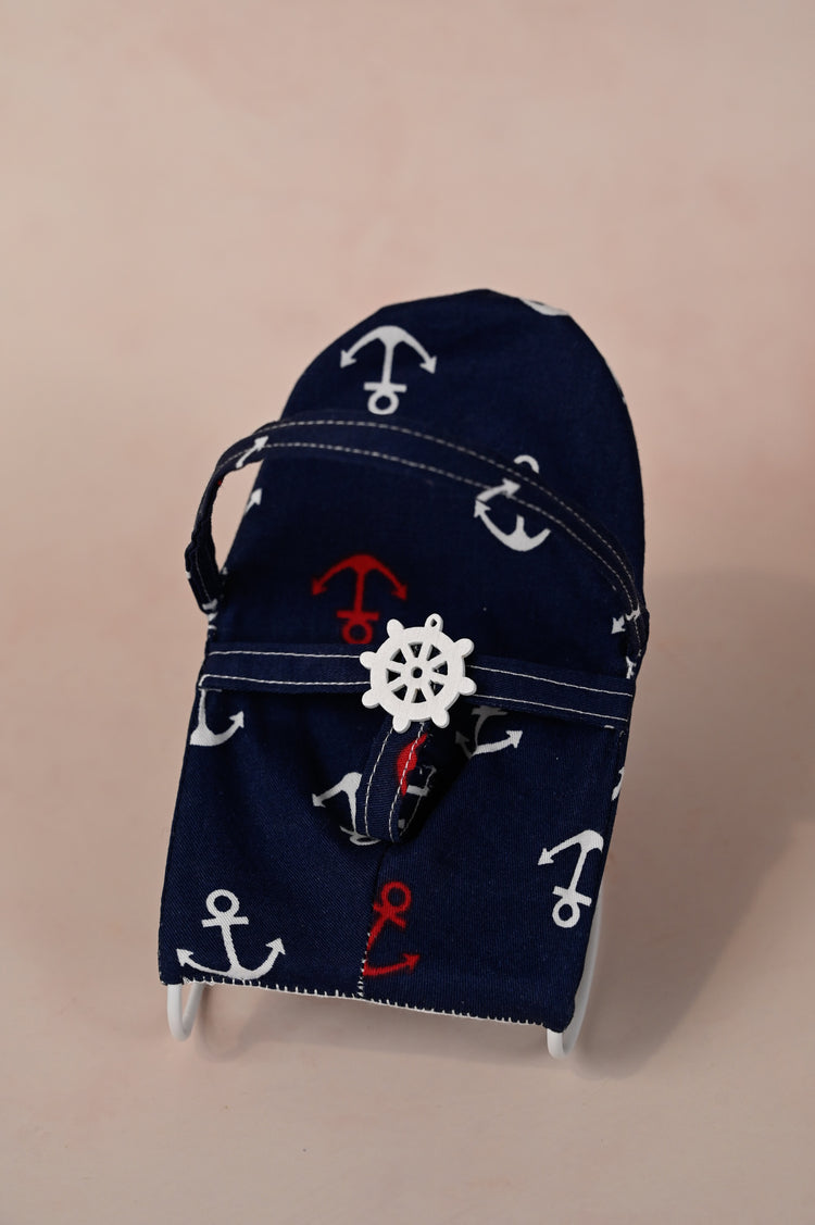 Miniature Baby Bouncer for 5-7 Inch Dolls - Navy Blue is backordered and will ship as soon as it is back in stock.