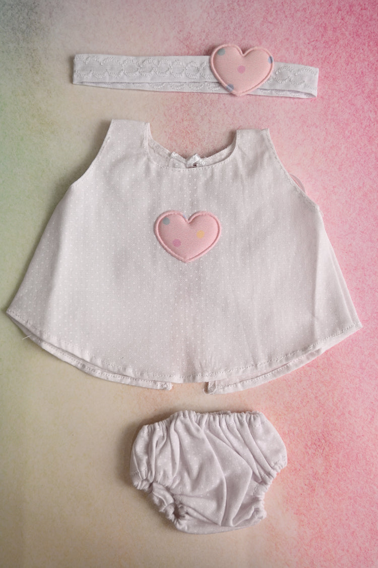 White Dress Set With Heart for 12-13" Dolls - Winter 2025 Collection