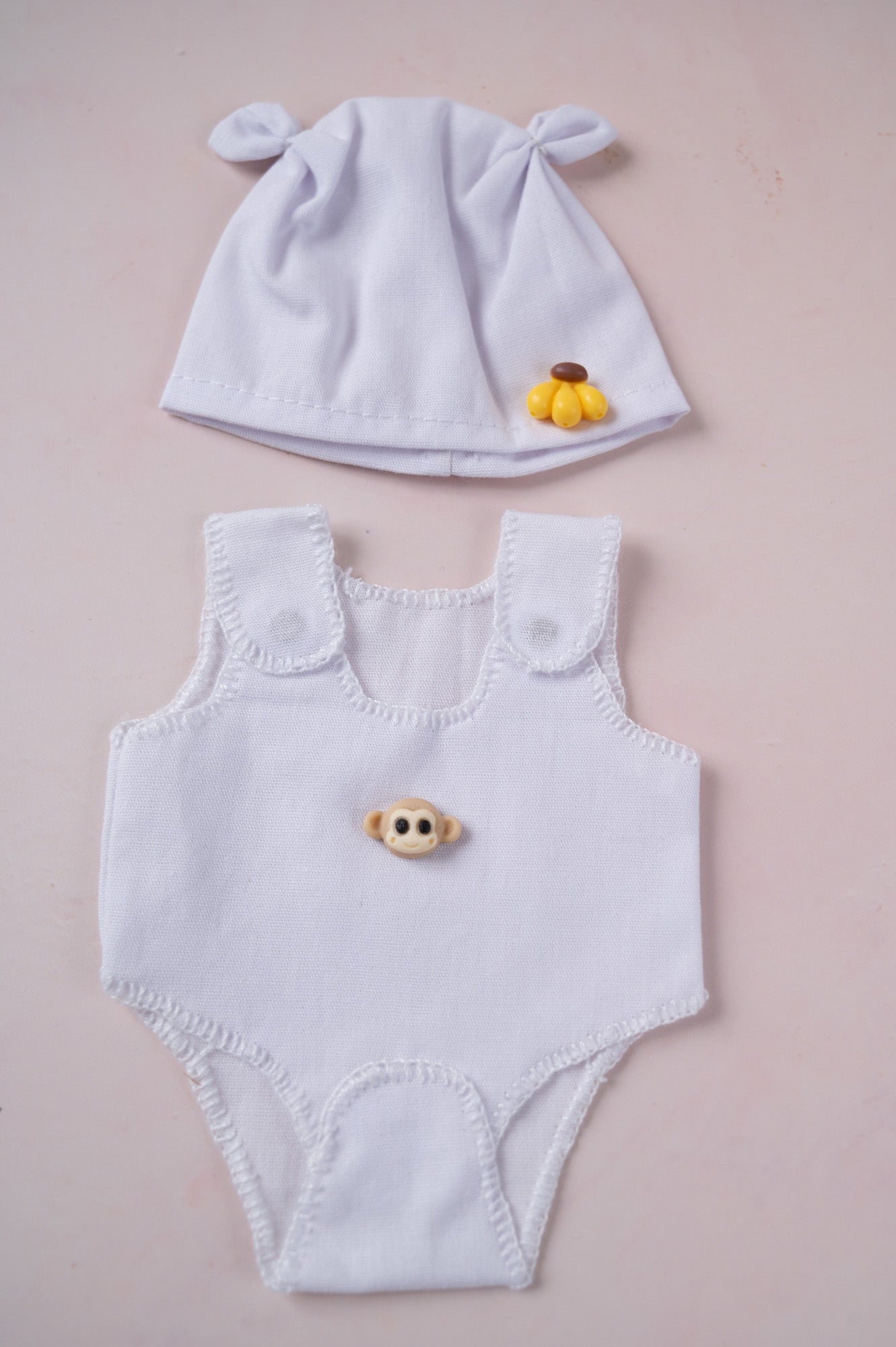 White Onesie With Monkey Button for 9" Dolls - Fall 2025 Collection