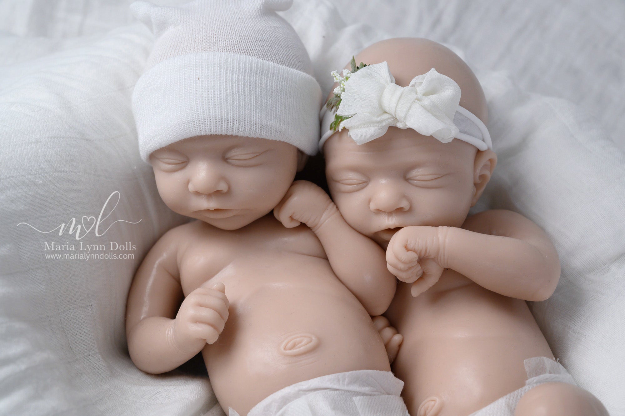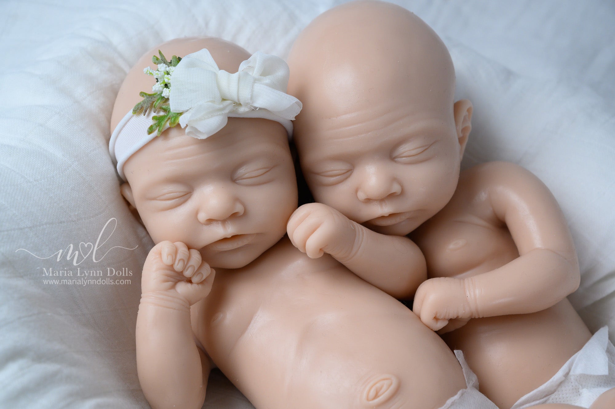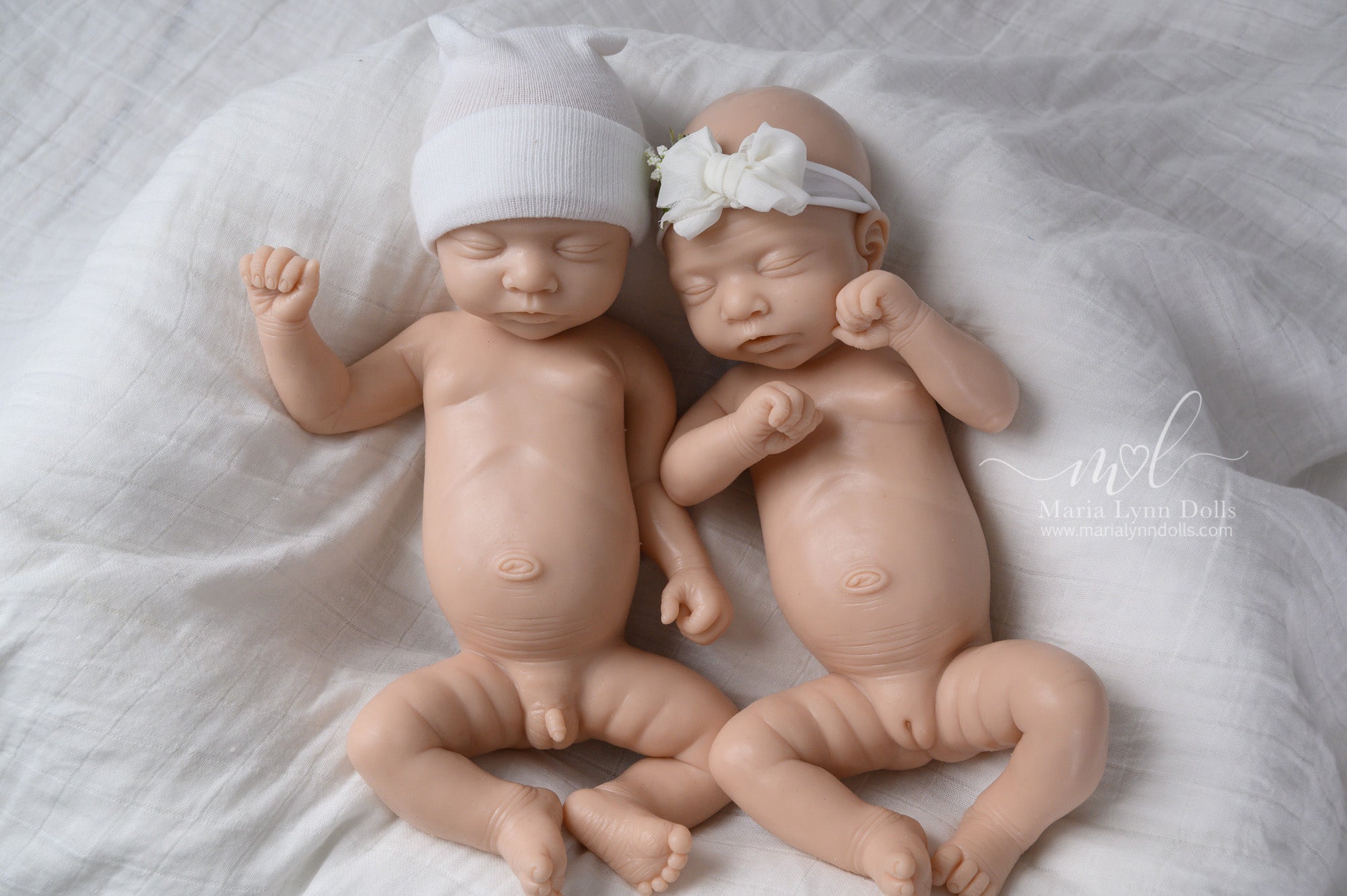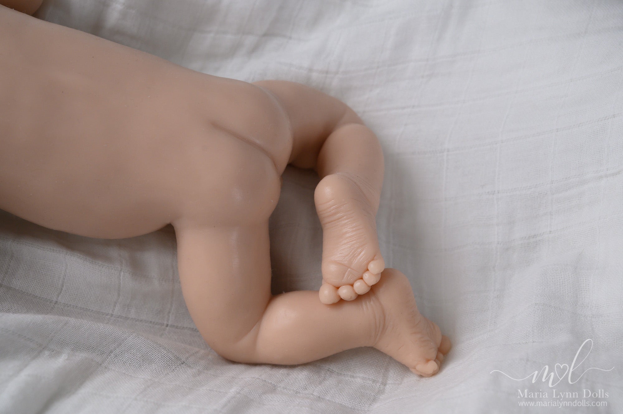 Adorable preemie baby Kian is ready to ship in Soft Blend silicone. His mouth comes opened with a tongue sculpted inside so he can take a preemie pacifier. Baby Kian is poured in the best quality platinum silicone and feels so real in your arms! This kit has posing armatures in his arms and legs so he can pose his arms and legs, adding to the realism!